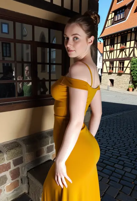 The lady in the red dress and the medieval town were blinded together for the prompt. Then the lady in the red dress was used as the "ControlNet Preprocessor VAE" image to create these images.