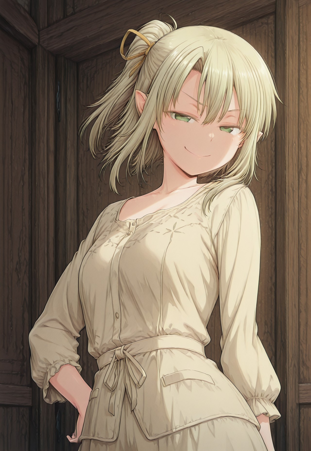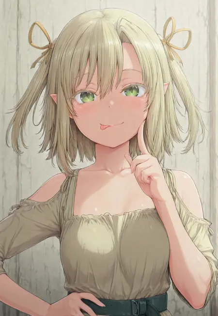 Trigger: 1girl, solo, blonde hair, green eyes, pointy ears,