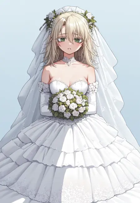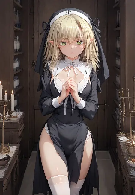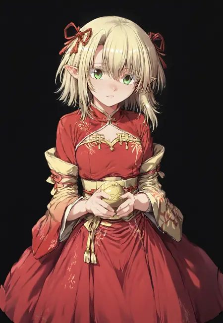 Trigger: 1girl, solo, blonde hair, green eyes, pointy ears,