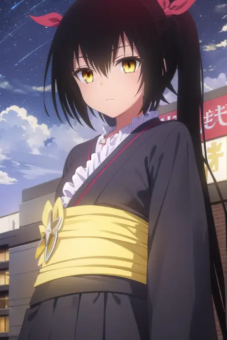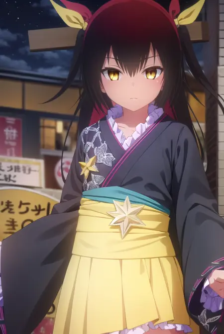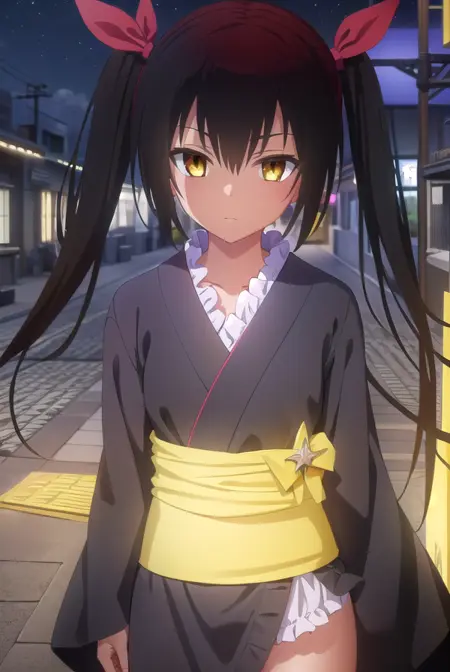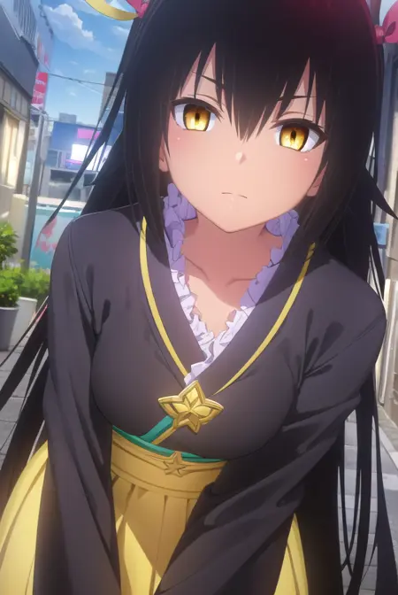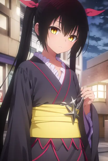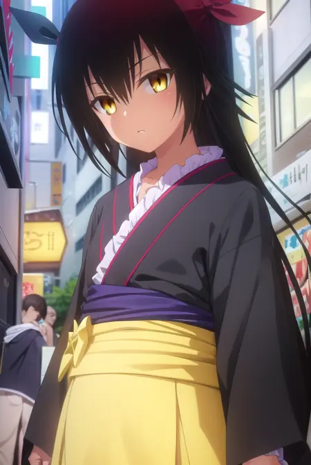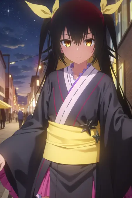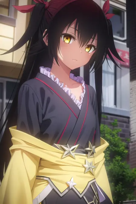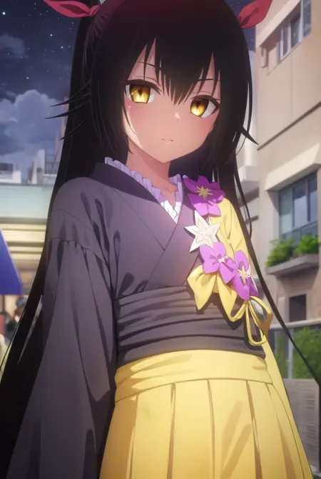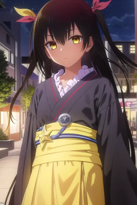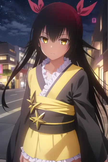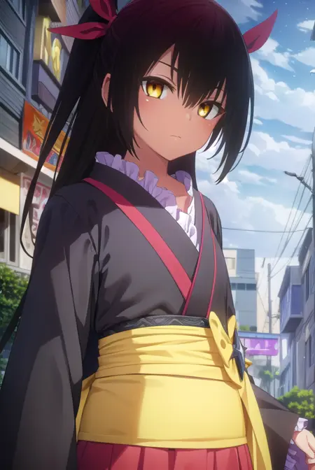nemesis, 긴 머리, 검은 머리, 리본, 트윈테일, 머리 리본, (노란 눈:1.5), 검은 피부, 검은 피부를 가진 여성,