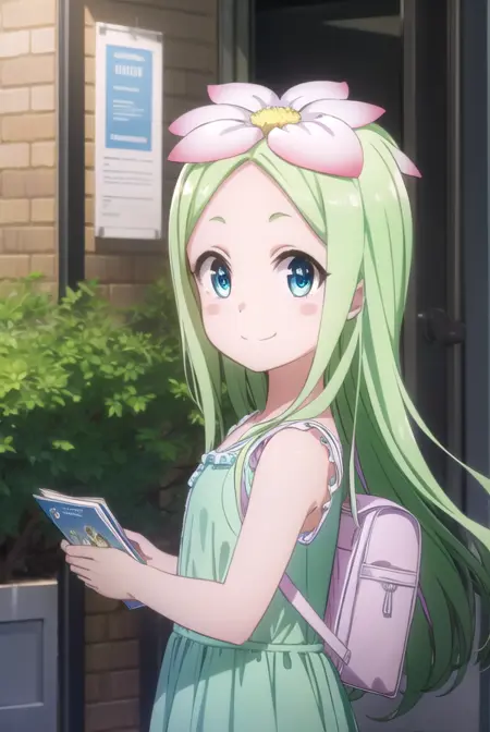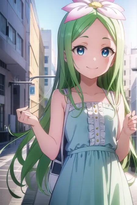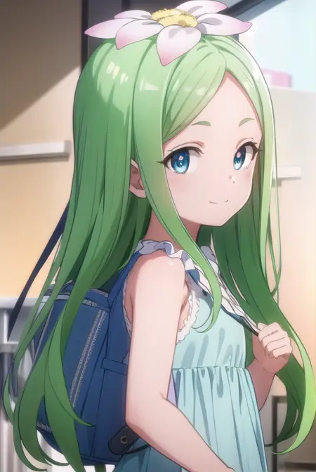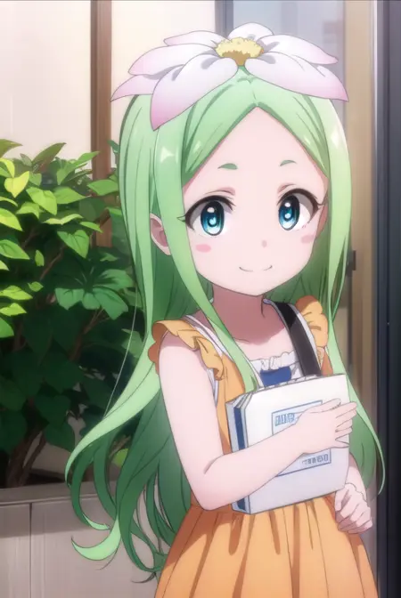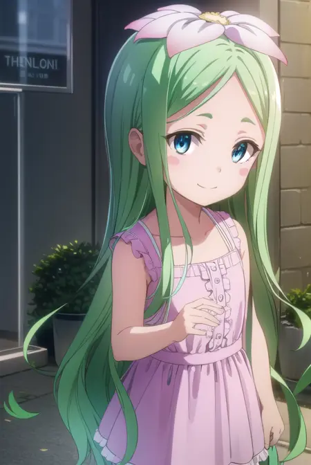 celine, 긴 머리, 파란 눈, 머리 장식, 꽃, 초록색 머리, 머리에 꽃, 골 파른 머리, 볼 립스틱 스티커,