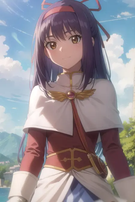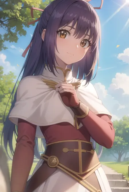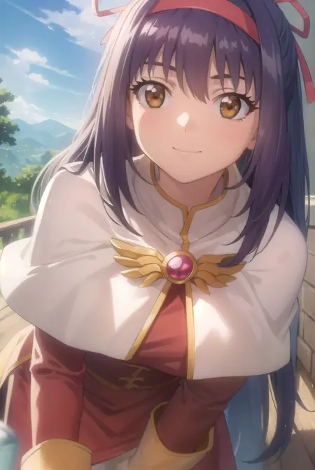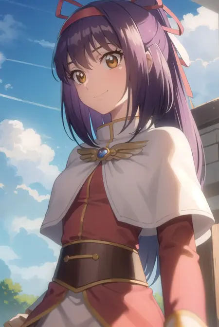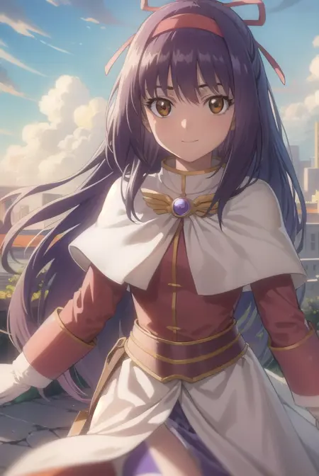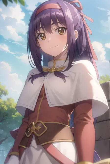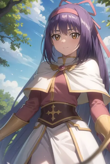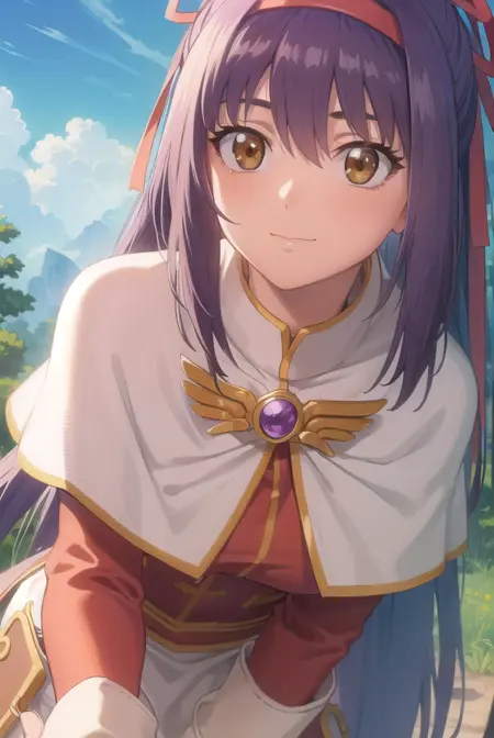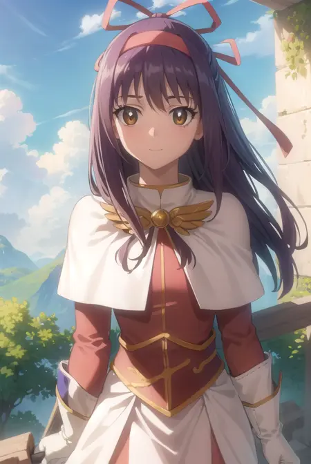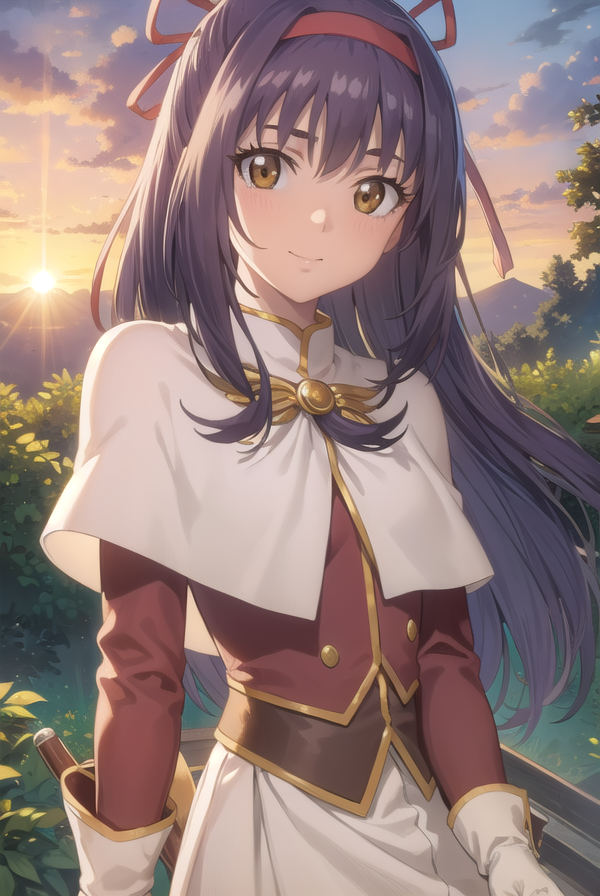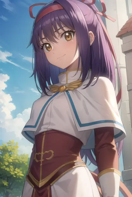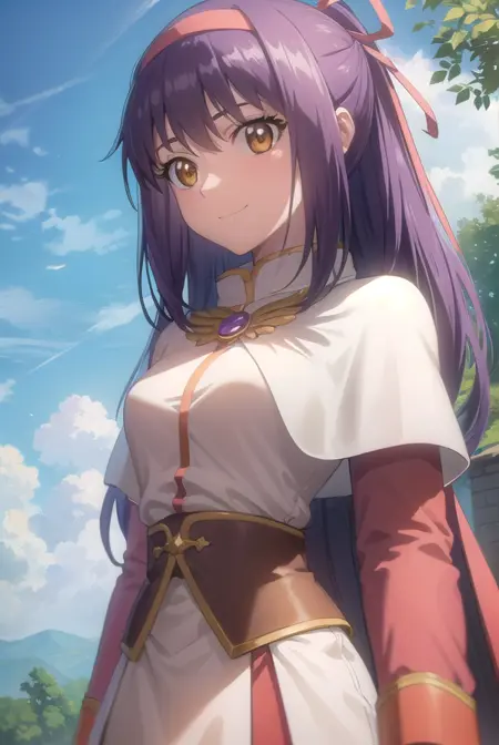 ragnarok yufa,长发,丝带,发带,马尾,紫发,发箍,鬓发,(棕色眼睛:1.5)