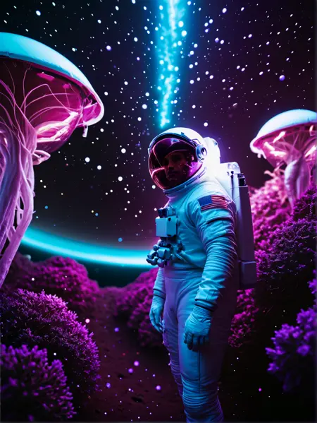 色や照明に関しては特にルールはありません。私は素敵なブラックライト効果を出すためにピンクとアクア色を使用しました。この照明に使用したLoRAは推奨リソースに記載されています。過去に作成した他のLoRAとは異なり、使用するチェックポイントによって結果が大きく異なる場合があります。そのため、この点をご留意ください。