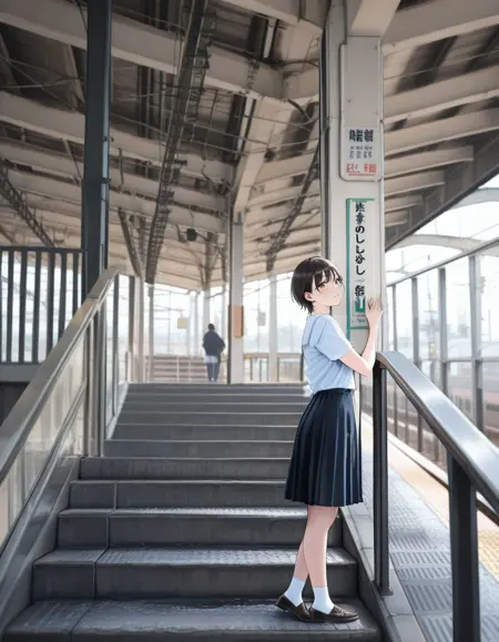 标志,站台长椅,自动售货机,楼梯,栏杆,海报(物体),