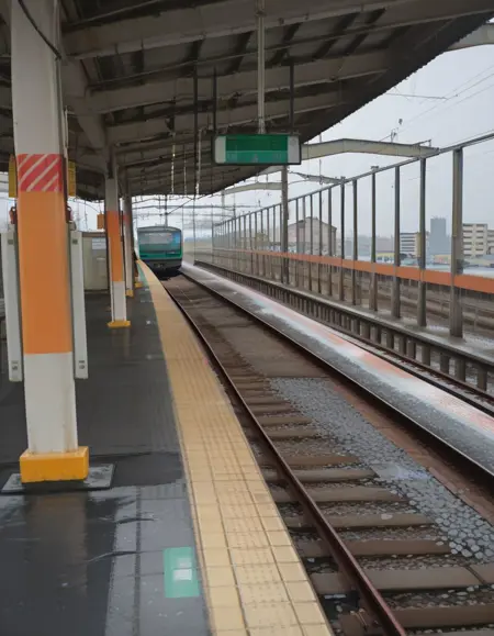 户外,火车站,铁轨,火车,站台,建筑,电线,电线杆,城市,城市景观,树木,