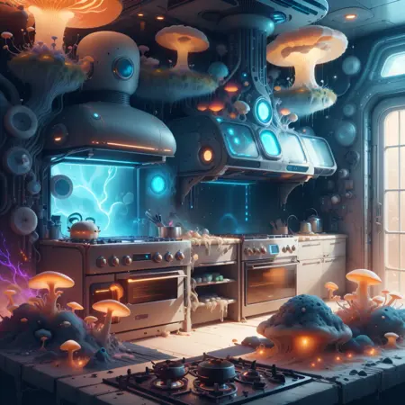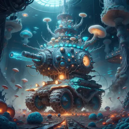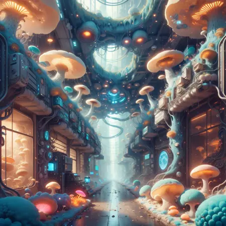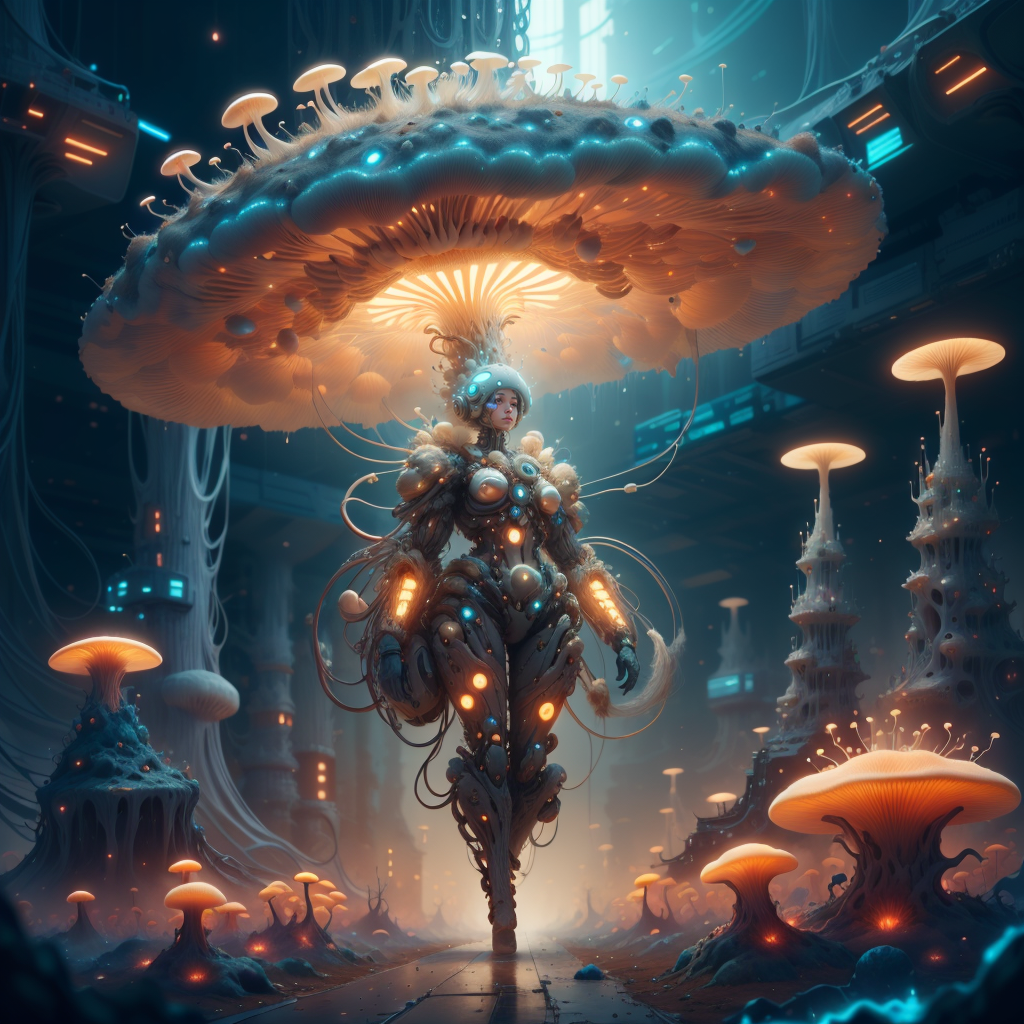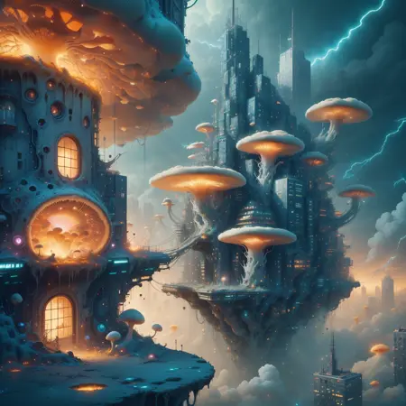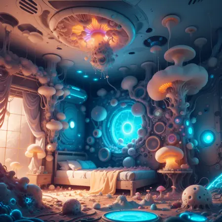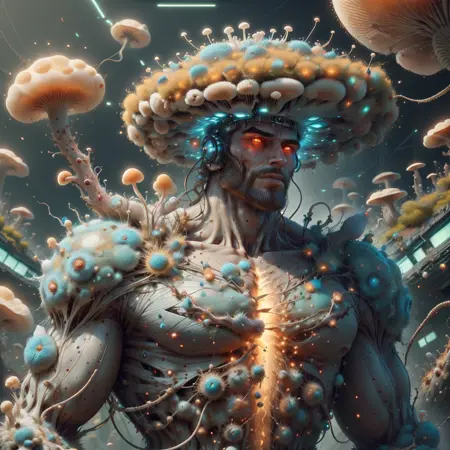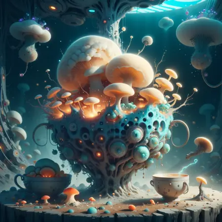 Psychedelic, Mycelia, spongy등을 추가할 수 있습니다.초현실적이고 환각적인 키워드와 잘 어울립니다.