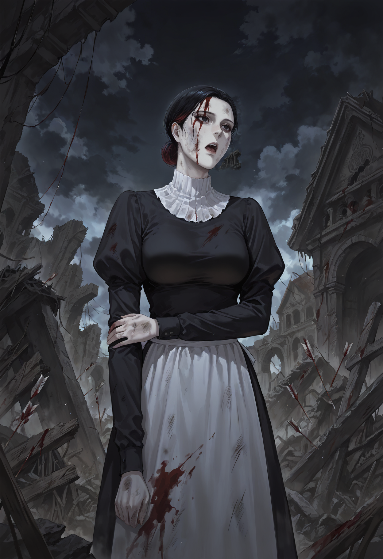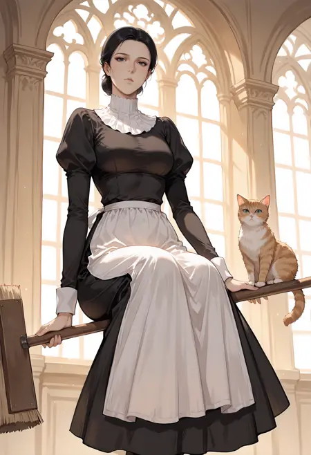 Outfit: dress,apron,long sleeves,juliet sleeves,puffy sleeves,maid,skirt,black dress