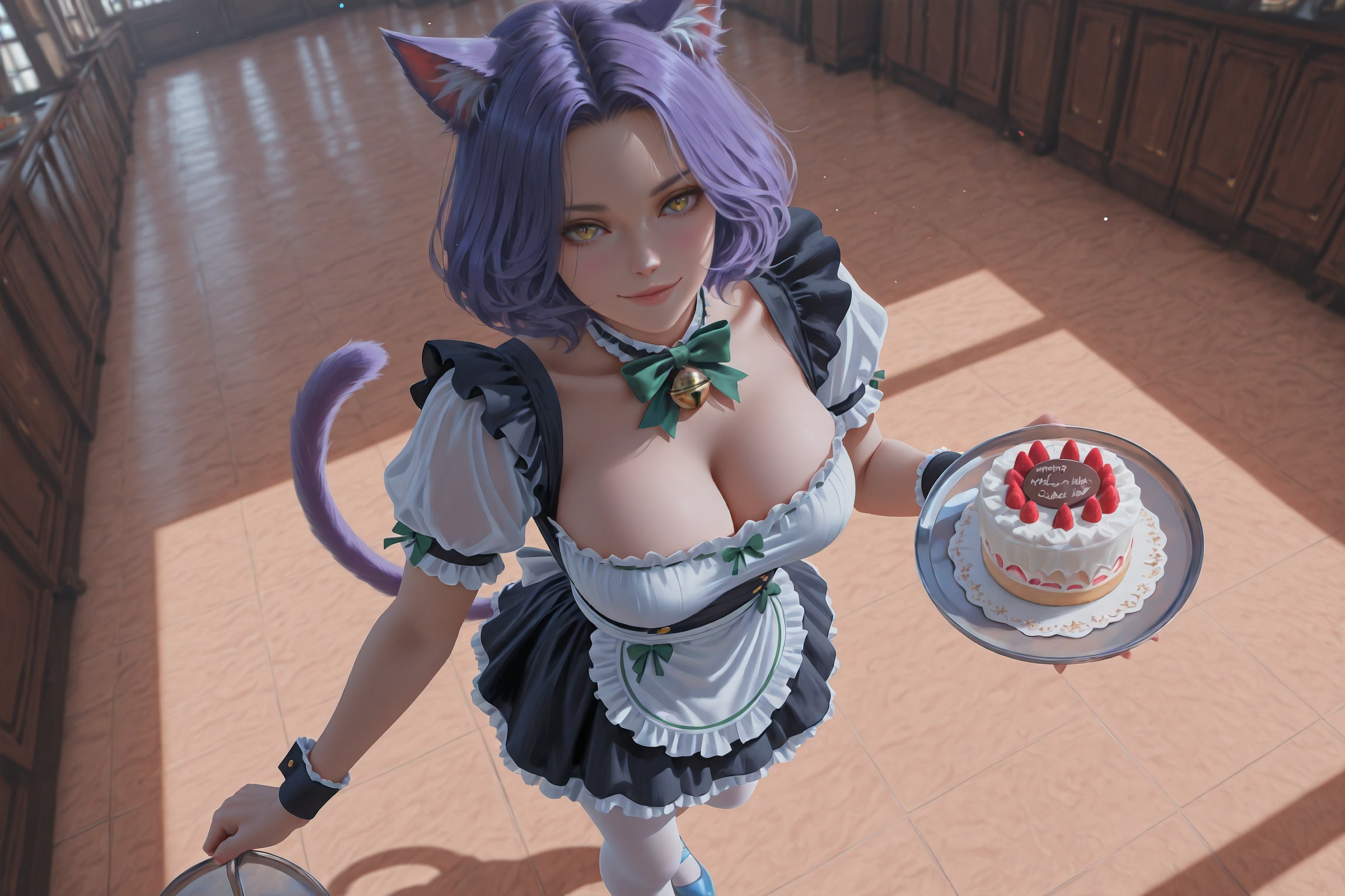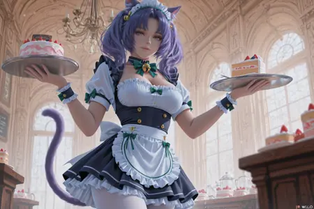 肉桂,1个女孩,单独,猫耳,猫尾,动物耳朵,尾巴,猫娘,围裙,女仆,紫色头发,蓝色鞋子,白色连裤袜,蝴蝶结,连裤袜,腰围裙,褶边,腕带,黄色眼睛,刘海分开,蓬松短袖,褶边围裙,绿色蝴蝶结,蓬松袖子,小铃铛,立绘,镂空,连衣裙,女仆围裙,颈铃,裙子,动物耳朵绒毛,蝴蝶结,白色围裙,