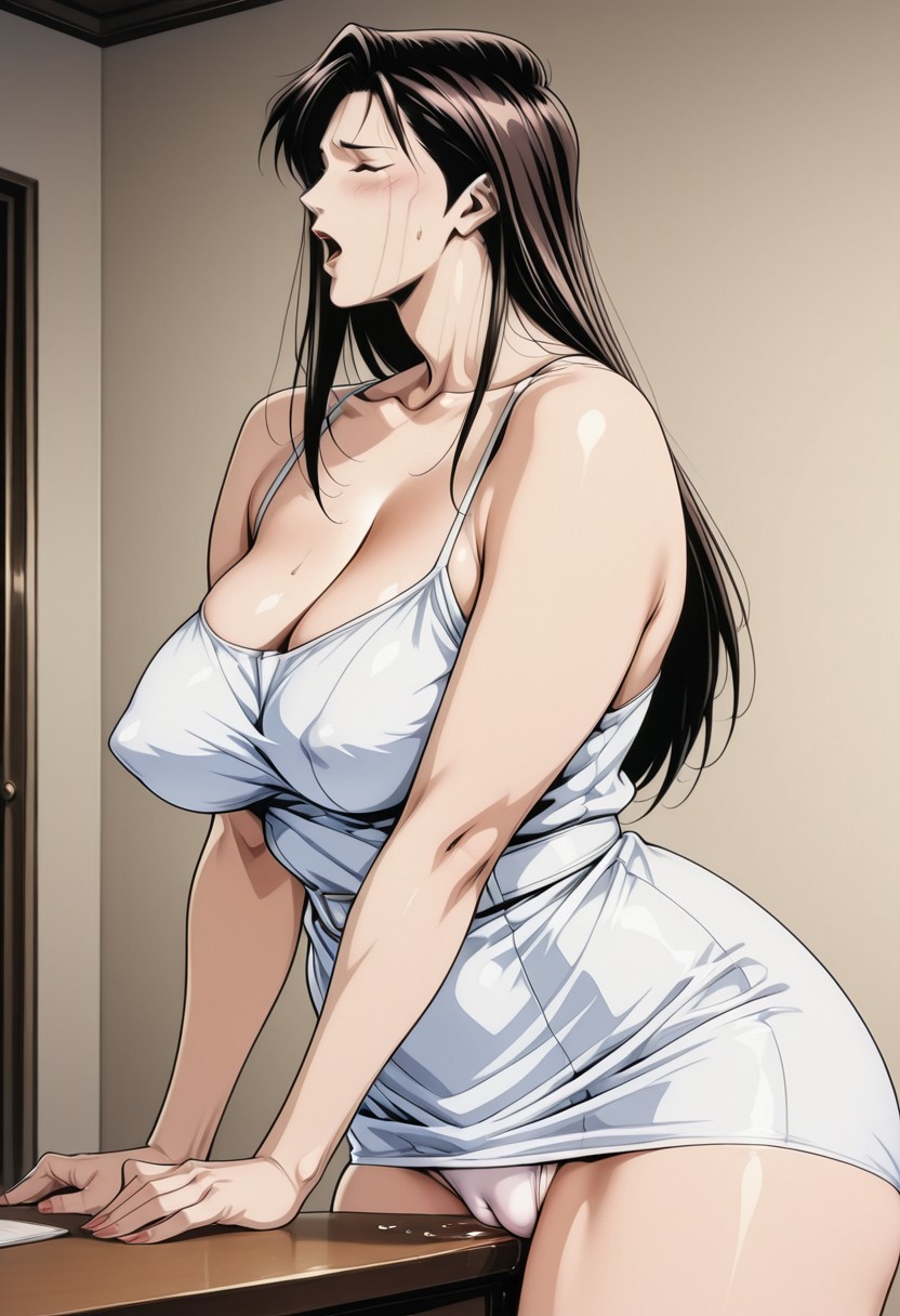 table masturbation, table, corner table, grinding, thick camel toe, closed eyes, from side, liquid trail on crotch,