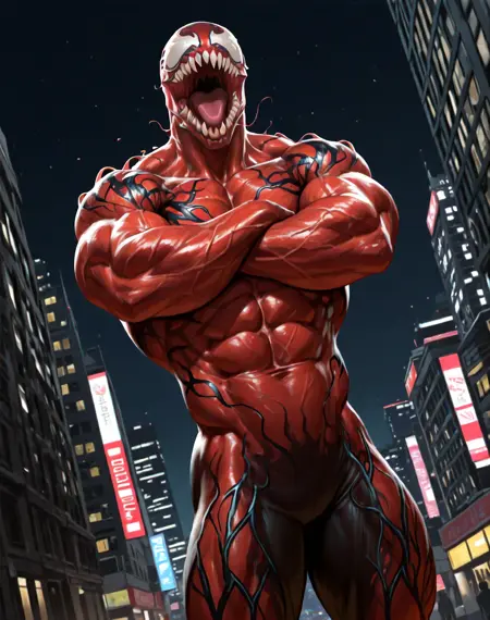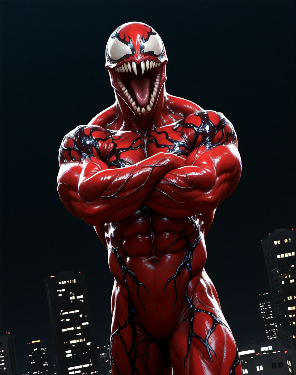 此LoRA的提示词为(CarnageVG, muscular, symbiote,)。