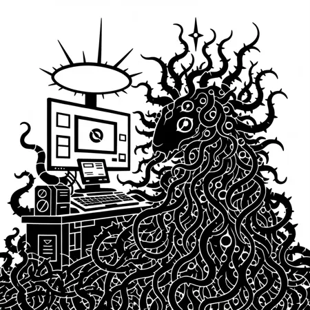 sunnyclockwork的艺术风格,以其基于恐怖主题的扁平黑白图像著称,如SCP基金会、血源诅咒等。