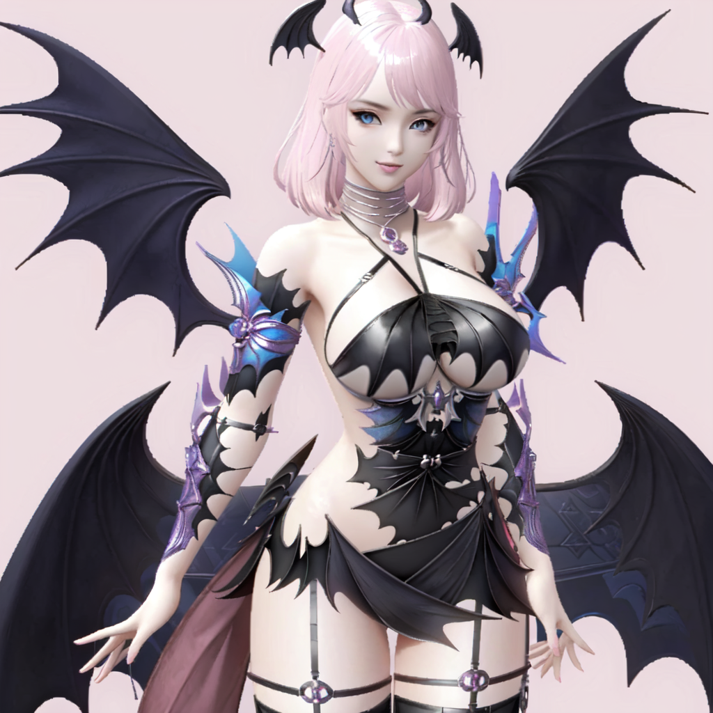 Outfit prompts: elbow gloves, wings, bat wings, demon tail, garter straps, demon girl, thighhighs, tail