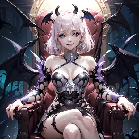 服装提示词:肘部手套, 翅膀, 蝙蝠翅膀, 恶魔尾巴, 吊袜带, 恶魔女孩, 过膝袜, 尾巴