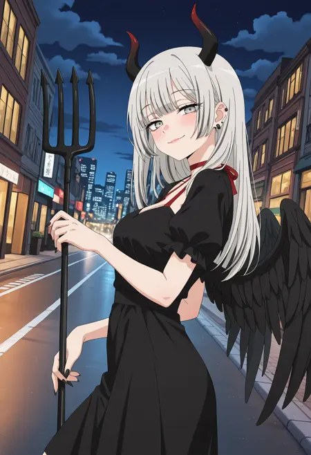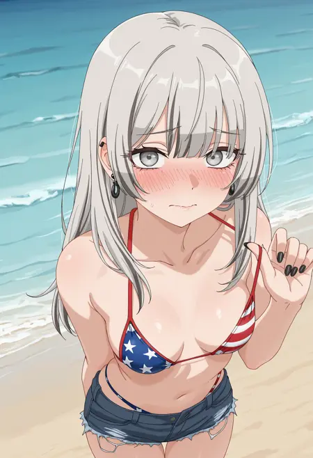 KJOseira, grey hair, streaked hair, grey eyes, long hair, black earrings, black nails,