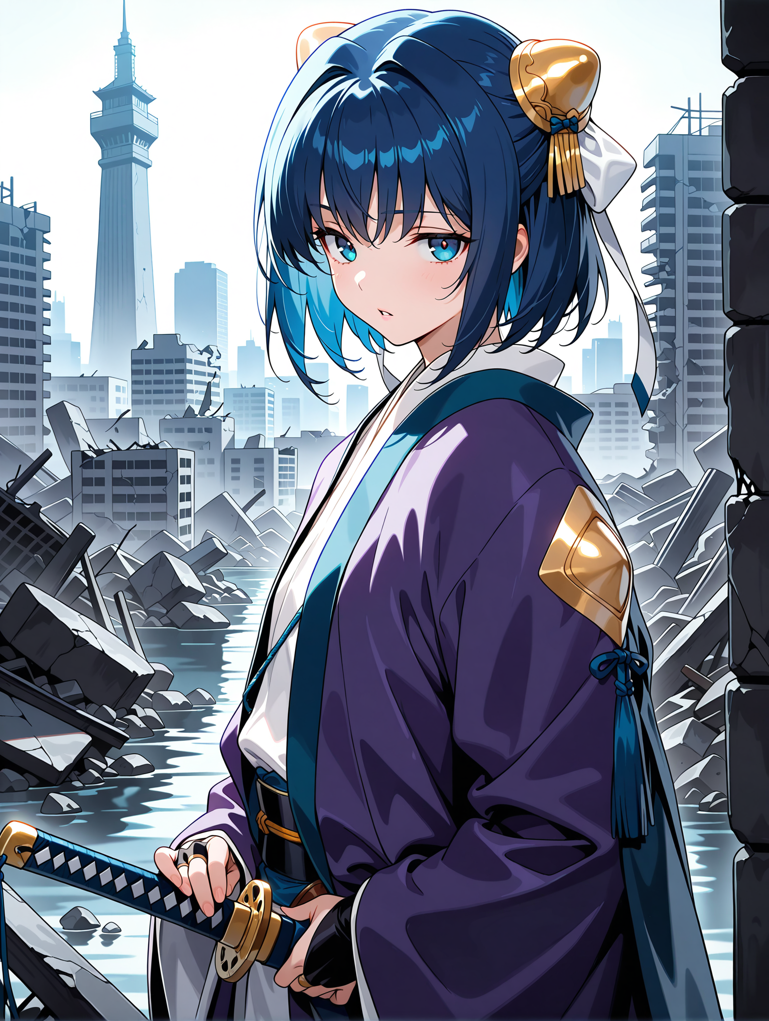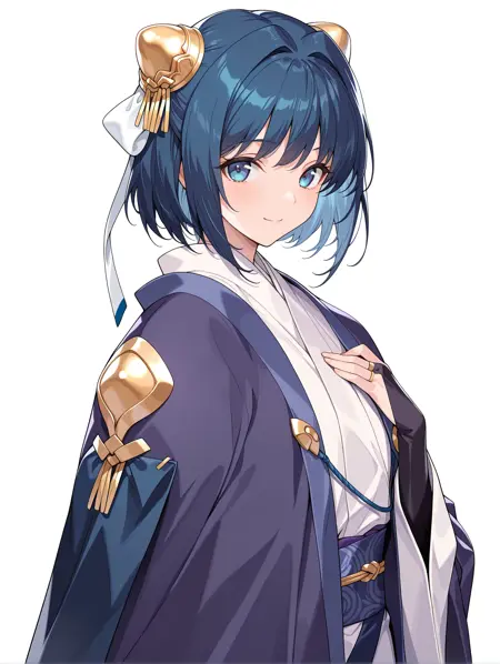 트리거 단어: yume, 헤어 오너먼트, 본 커버, 청색 머리, 청색 눈, 단발