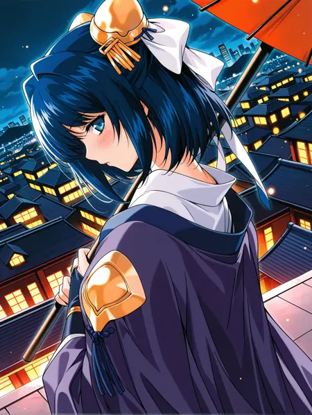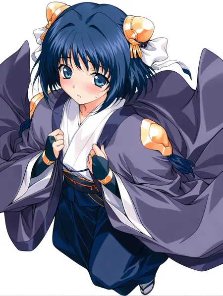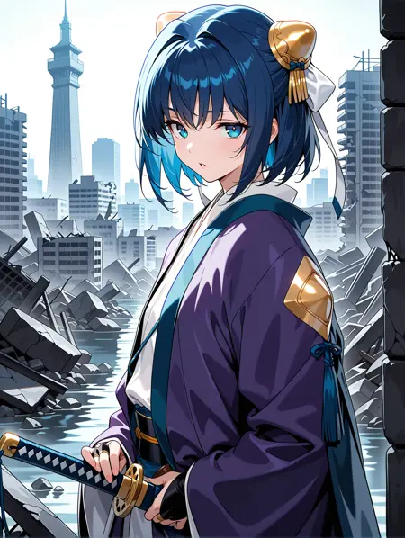 触发词:yume, hair ornament, bun cover, blue hair, blue eyes, short hair