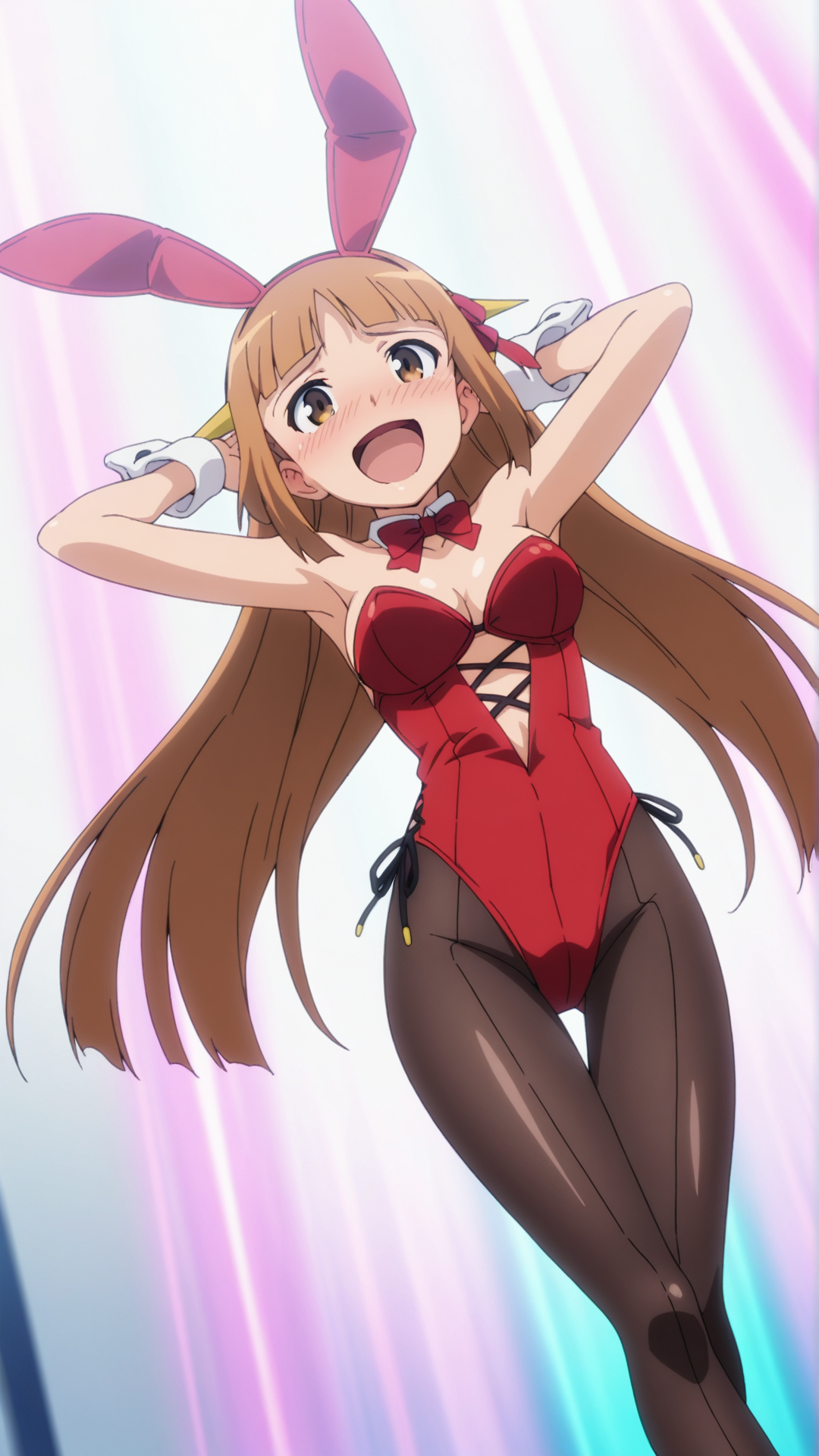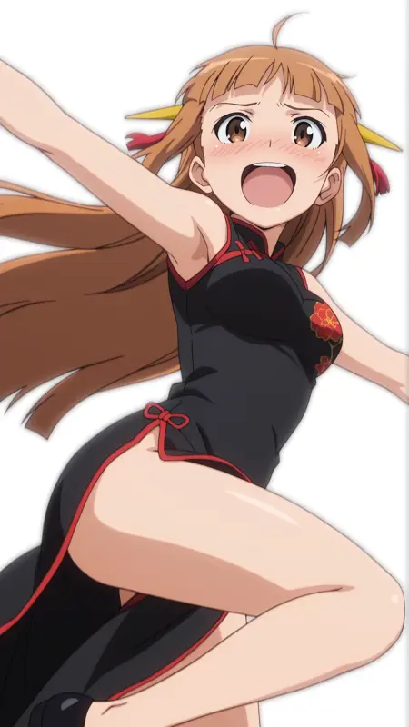外观:棕色头发,棕色眼睛,齐刘海,长发及地,