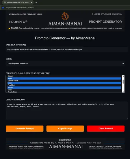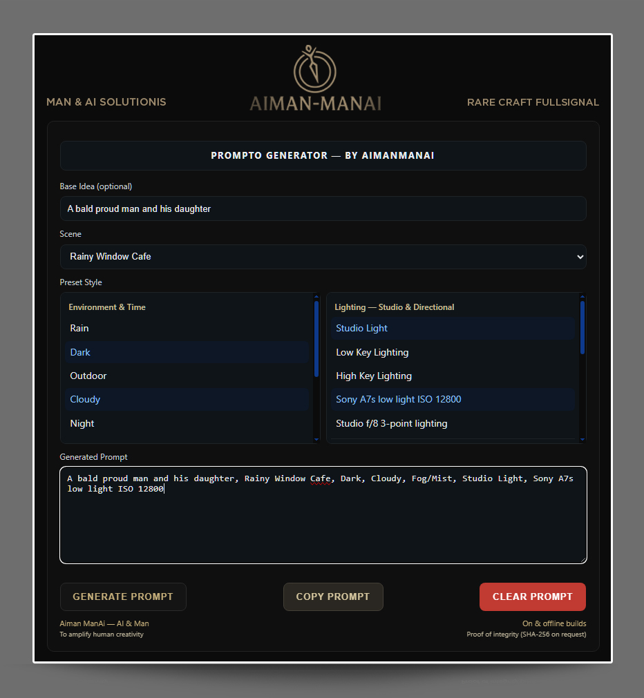 Credit must remain: “Prompto Generator — by AimanManai.”