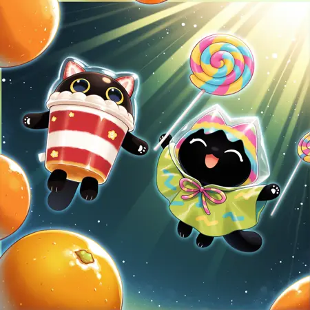 Tags (character 3): lollipo yummy, black cat, holding lollipop, swirl lollipop, no humans, animal focus,