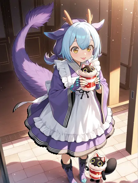 Tags (character 11): laundry dragonmaid, blue maid outfit, blue fingerless gloves, blue knee boots