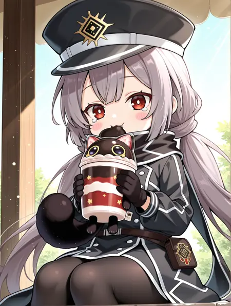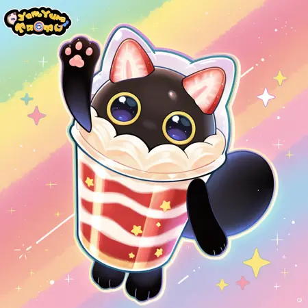 Tags (character 1): cupsie yummy, no humans, 1other, animal focus, disposable cup, black cat, animal-themed food,