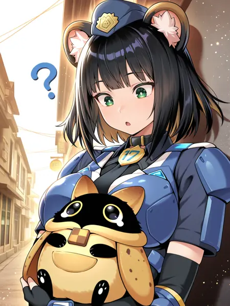 Tags (character 12): lil la, stuffed shark toy,blue sneakers, object hug, blue ribbon, white sleeveless dress, blush stickers, full body, blue jacket, white sailor hat, white socks, blue demon wings