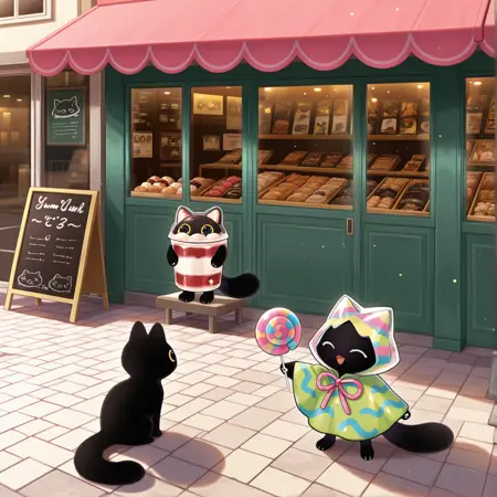 Tags (character 2): cooky yummy, no humans, black cat, animal focus