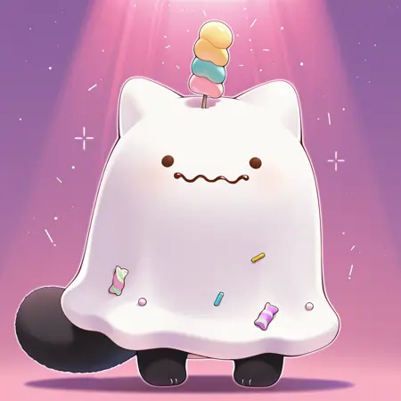 Tags (character 4): marshmao yummy, animal focus, black cat, no humans, wavy mouth, solid circle eyes