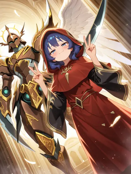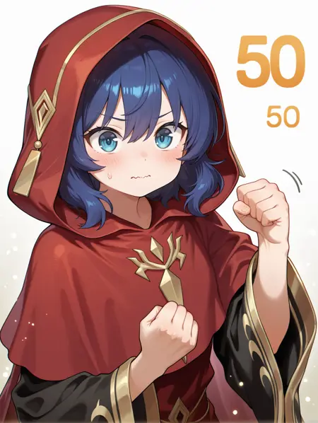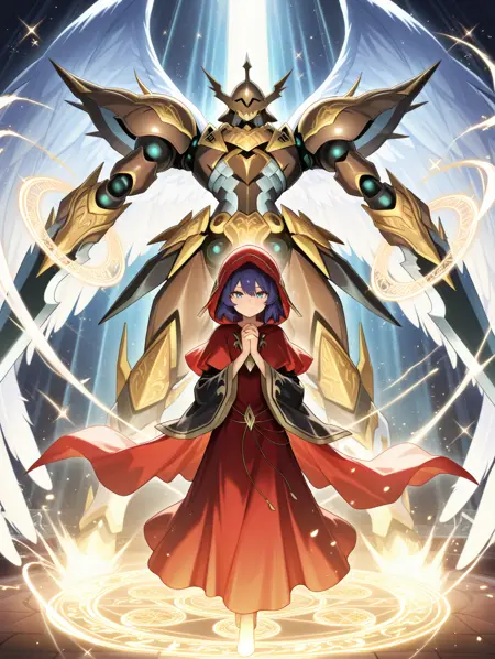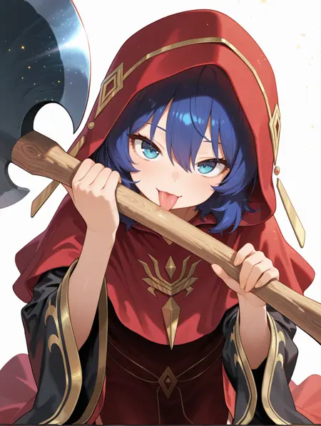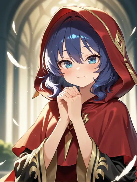 タグ(衣装):赤いフード付きカプリ、赤いローブ、黒い広い袖