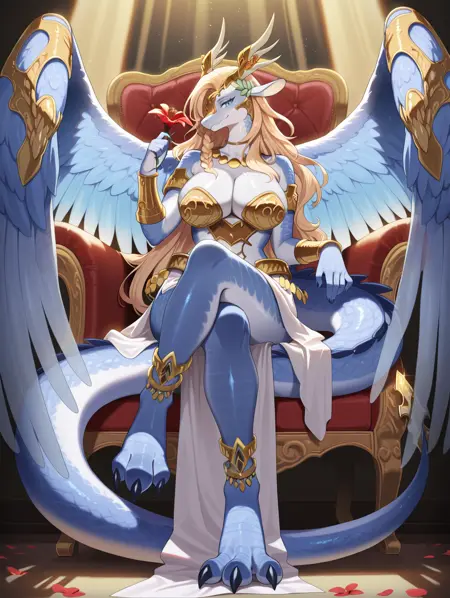タグ(キャラクター3 ドラゴンからの追加):毛深い女性、変形、フュリフィケーション、鋭い爪、ドラゴンガール、青いウロコ、青い肌、動物の足、二足歩行、青い翼、ツートーンの毛並み、