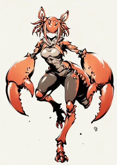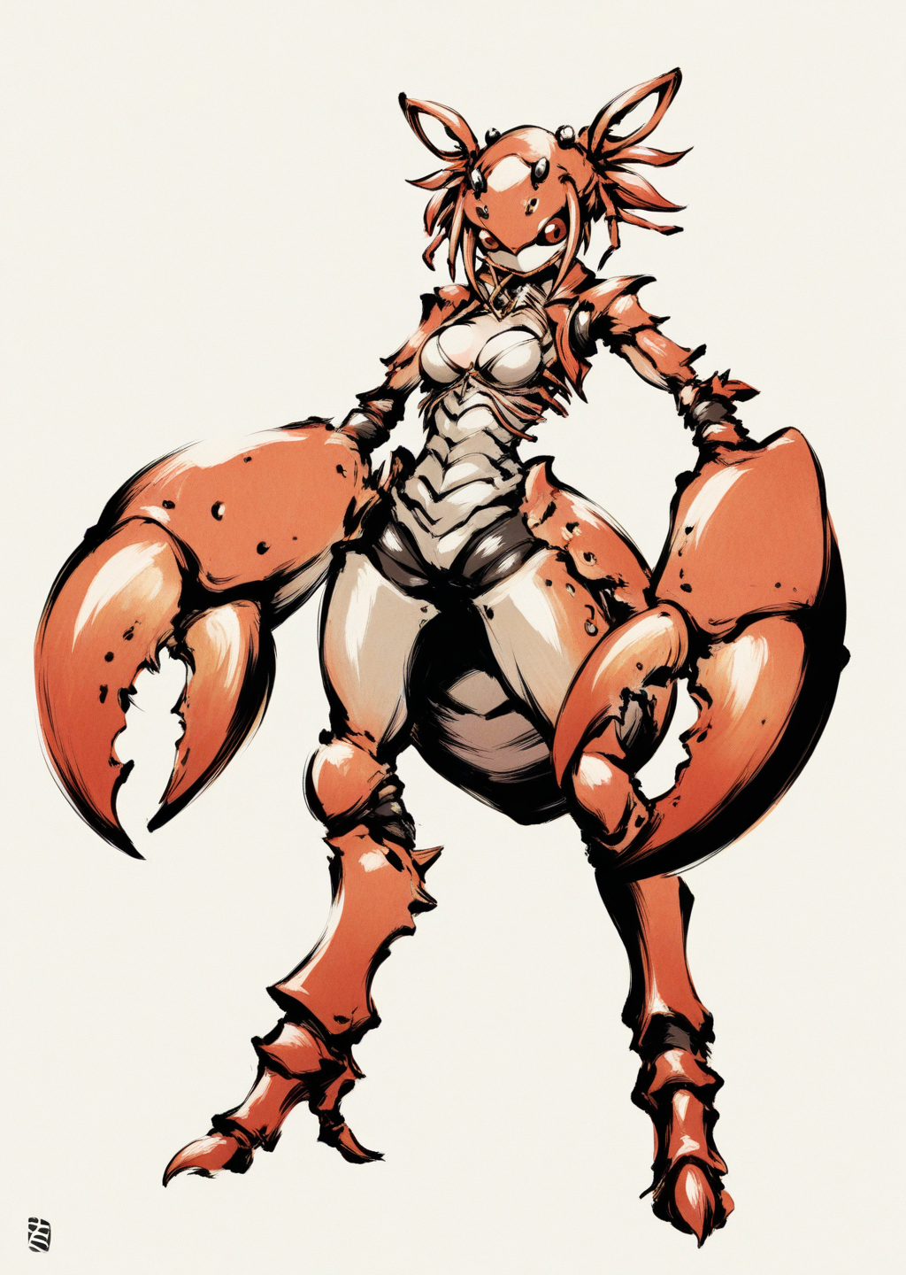 Prompts: crustation girl, monster girl, arthropod girl, claws,