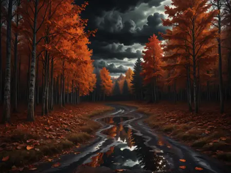 | Trained Words | autumn forest, stormy sky, dark clouds, orange leaves, wet path, muddy road, fallen leaves, dramatic lighting, cinematic, reflection in puddles, high contrast, ultra-detailed,Copied! abandoned greenhouse, autumn light, sun rays, fallen leaves, reflection in puddles, ivy walls, golden hour, cinematic, dramatic lighting, ultra-detailed,Copied! forest pit, mossy tree roots, autumn forest, fallen leaves, roots exposed, forest decay, ultra-detailed,Copied! |