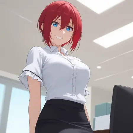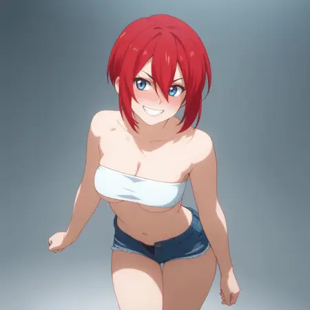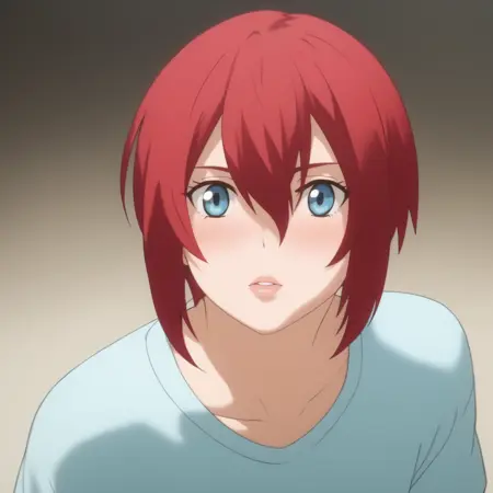 ReMonsterRubellia, 파란 눈, 빨간 머리, 단발, 눈 사이의 머리카락,