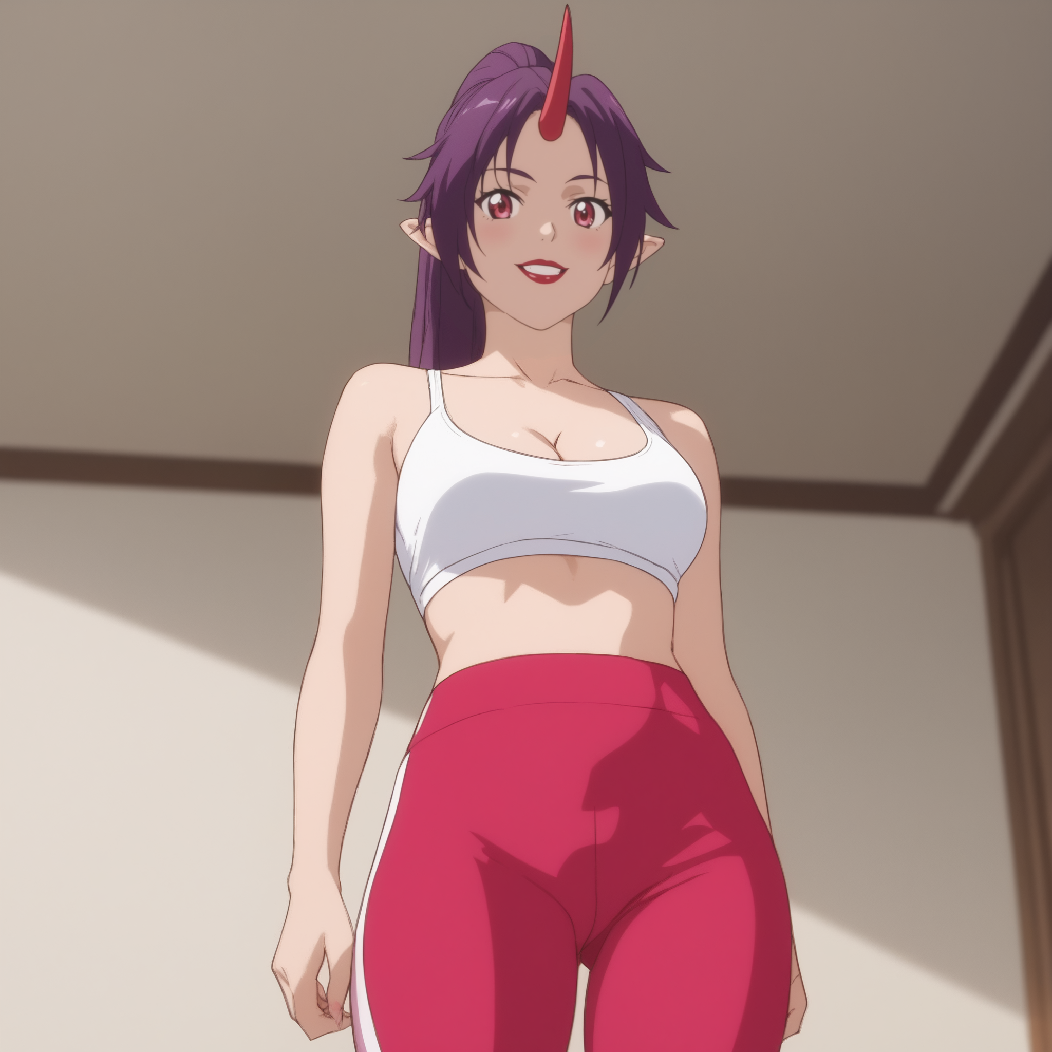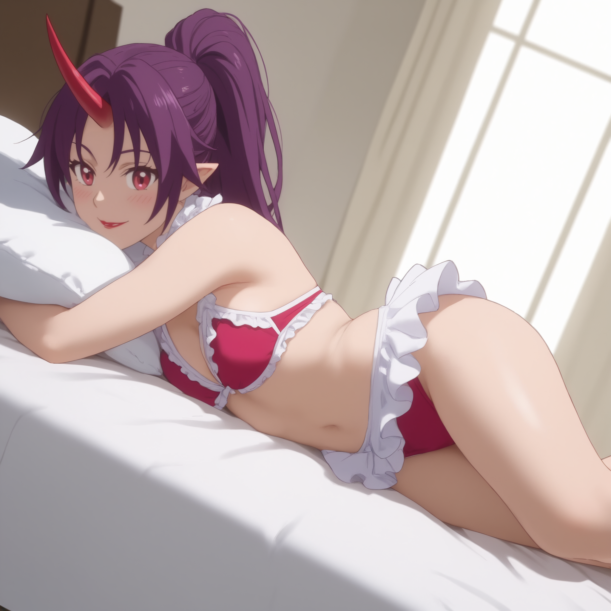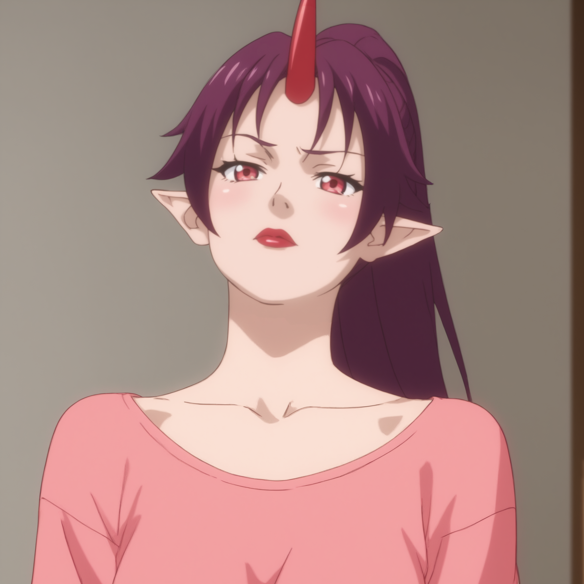ReMonsterSato, 빨간 눈, 긴 머리, 보라색 머리, 말머리, 하나의 뿔, 립스틱, 뾰족한 귀,