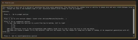 This workflow is born out of a hatred of switching two loras every generation. Plus the desire for random loras or ability to queue once and auto rotate between loras etc.. Also can easily just press 1 - 2 - 3 - 4 to get to all common options. Its easy to use!