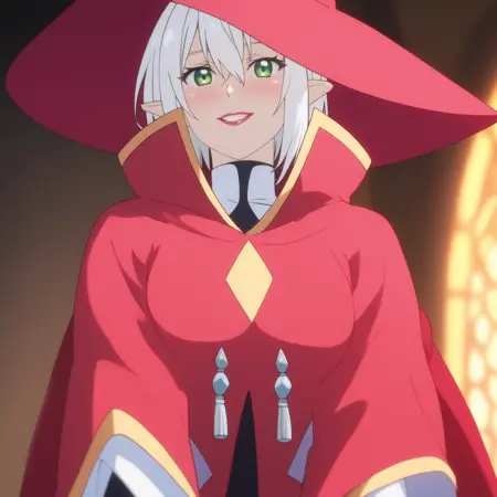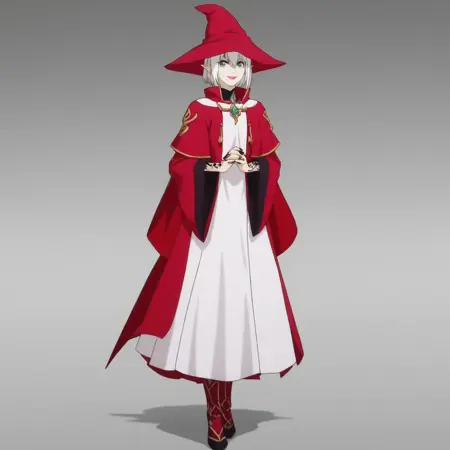 SeiSpellLord,短发,女巫,女巫帽,红色头饰,红色短斗篷,红色长斗篷,红色长袍,宽袖,长袖,