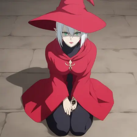 SeiSpellLord, 단발, 마녀, 마녀 모자, 빨간 머리 장식, 빨간 망토, 빨간 겉옷, 빨간 드레스, 넓은 소매, 긴 소매,