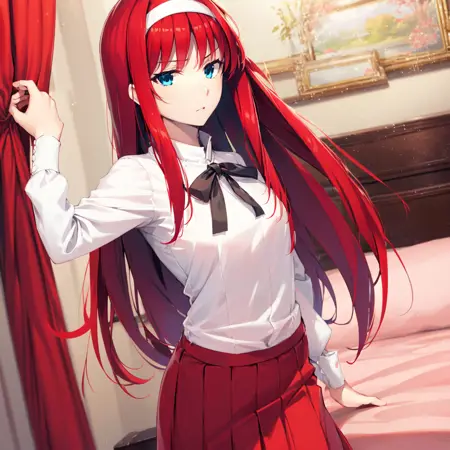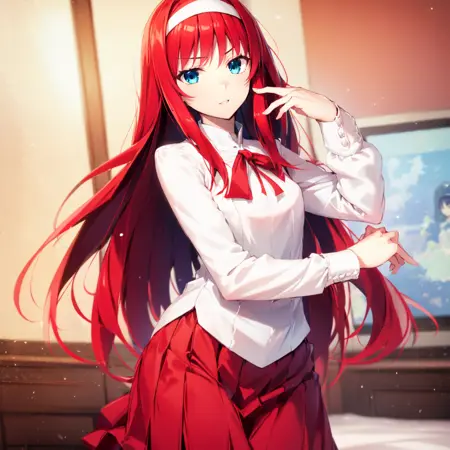 | Trained Words | an artistic picture of a anime style young woman with long flowing hair standing, indoors, bedroom background, 1girl, tohno akiha, solo, long hair, blue eyes, long skirt, hairband, skirt, boots, black hair, red skirtCopied! an anime style girl with short hair and dressed in an outfit as the one from the anime, 1girl, tohno akiha, solo, long hair, skirt, school uniform, black hair, blue eyes, hairband, black socks, serafuku, socks, full body, hand on hip, white indoors, pleated skirt, bedroom background, kneehighsCopied! a cartoon image of a woman in red hair wearing a blouse and skirt, tohno akiha, 1girl, solo, long hair, skirt, red skirt, red hair, hairband, white hairband, blue eyes, shirt, looking at viewer, white shirt, indoors, bedroom background,Copied! |