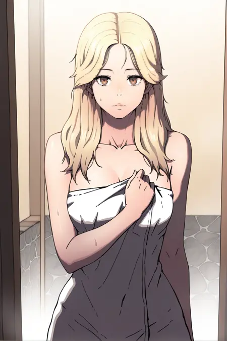 mi-jung,1girl,solo,blonde hair,long hair,jewelry,