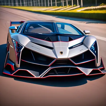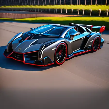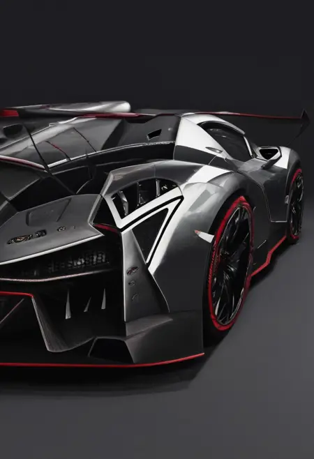 (Lamborghini_Veneno, lamborghini, supercar, sharp edges, spoiler, scissor doors, sports car, wheels, road, realistic),