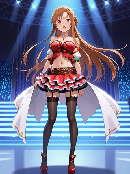 아이돌 무대 복장용 LoRA. 강도 0.8~0.9.