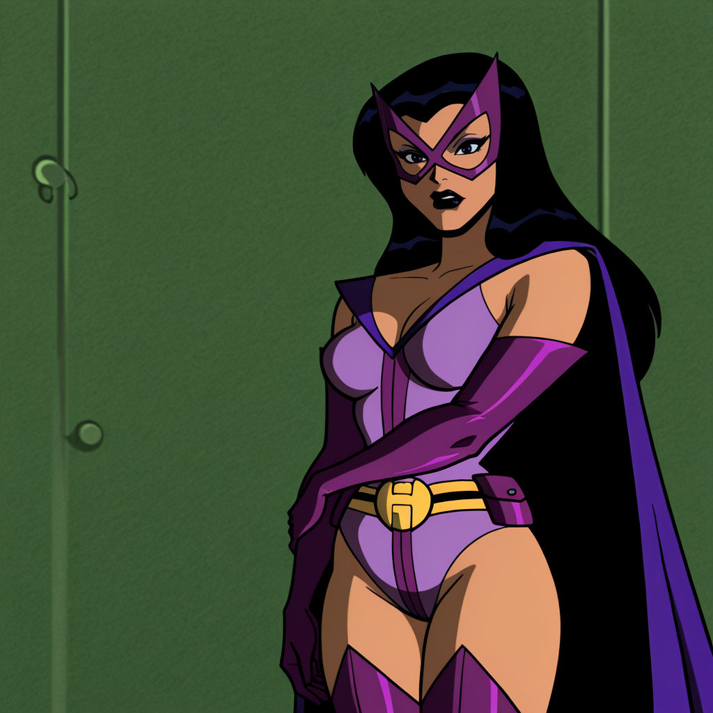 이 LoRA는 "배트맨: 브레이브 앤드 더 볼드"에 등장하는 캐릭터 "헌트리스"에서 유래했습니다.
