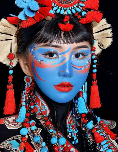 要获得效果,必须使用触发词:“ornamented face portrait”