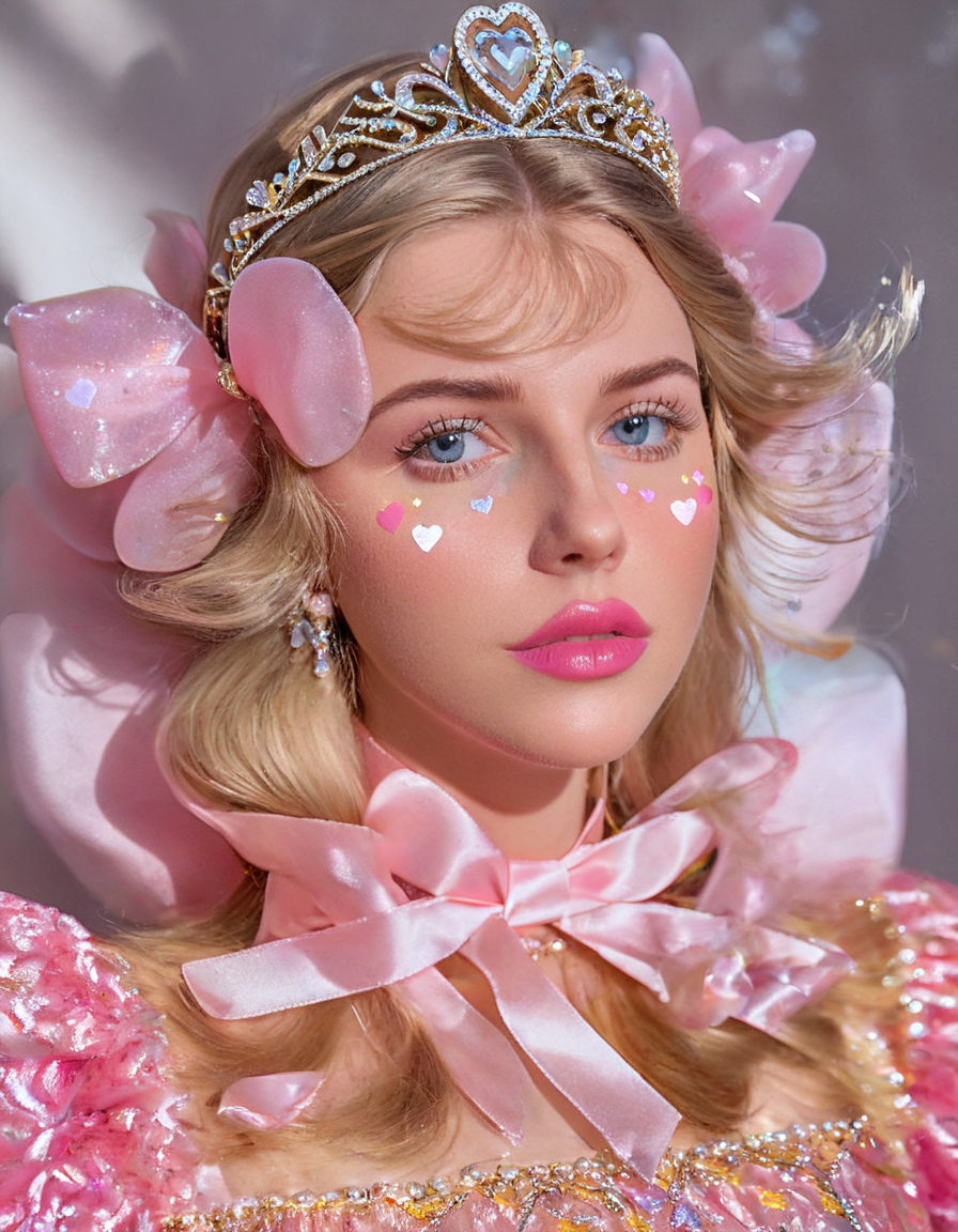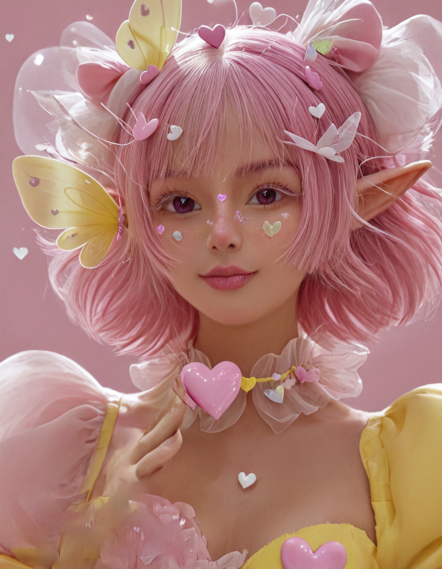 但该模型对以下与训练图像匹配的关键词反应良好:蝴蝶、花朵、流苏、珍珠、珠宝、丝带、纽扣、毛皮、星星、虹彩、闪粉、渔网、心形。模型还能将提示词中几乎任何其他内容都附加到面部上