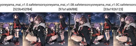 A more extensive style of Yoneyama Mai, almost all of the author's works are taken as a basis, respectively, the style is not "the same", the artist paints very variously. There are some problems: It observes anatomy somewhat worse than my best models, this is due to the complex anatomy in the artist's art, in the future I think I know how to fix it and I will solve it.