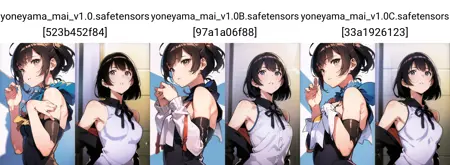 这是更全面的 Yoneyama Mai 风格,几乎以作者所有作品为基础,但风格并非“完全一致”,艺术家的画风极其多样。目前存在一些问题:解剖结构的准确性略逊于我最好的模型,这是由于艺术家作品中的解剖结构较为复杂。未来我认为自己知道如何修复这个问题,并将加以解决。