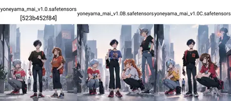 这是更全面的 Yoneyama Mai 风格,几乎以作者所有作品为基础,但风格并非“完全一致”,艺术家的画风极其多样。目前存在一些问题:解剖结构的准确性略逊于我最好的模型,这是由于艺术家作品中的解剖结构较为复杂。未来我认为自己知道如何修复这个问题,并将加以解决。