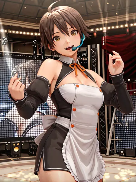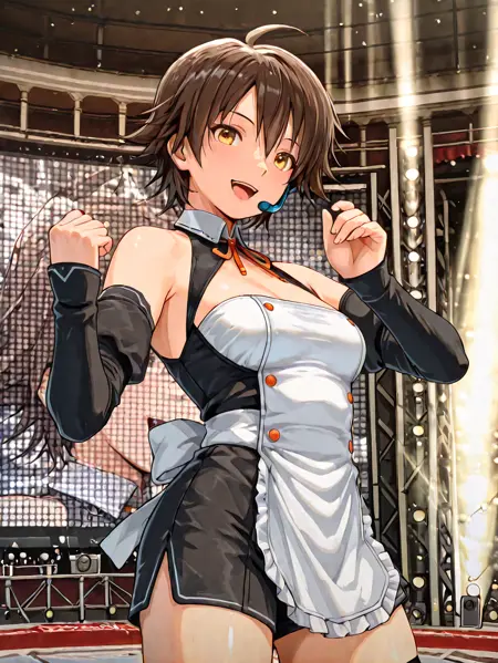 衣装が黒になりがちなので、white apronなどのpromptがあった方がベター