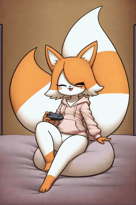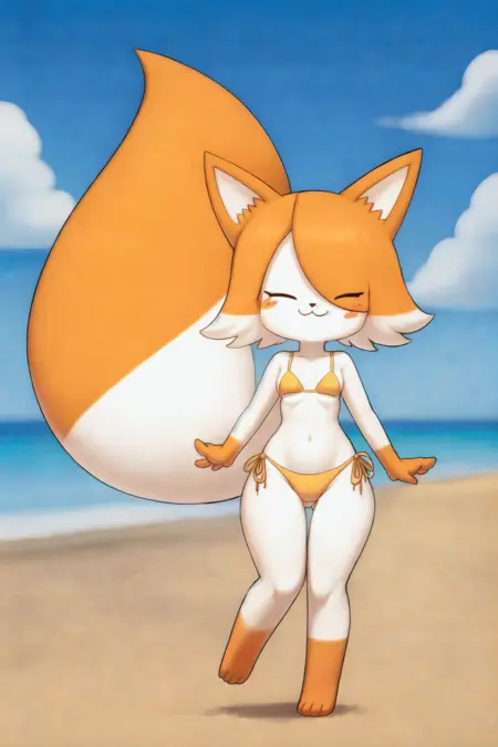 我建议你提高与服装、姿势和动作相关的标签权重,因为这些内容通常容易被忽略。生成时角色可能显得较小,因为尾巴占用了大量空间(为了大尾巴,这是可以接受的妥协 :3)。有时尾巴中会出现额外的头,或出现额外的尾巴。物体、背景等可能细节较少。手部很可能表现不佳,但可通过优质标签和img2img放大来改善。
