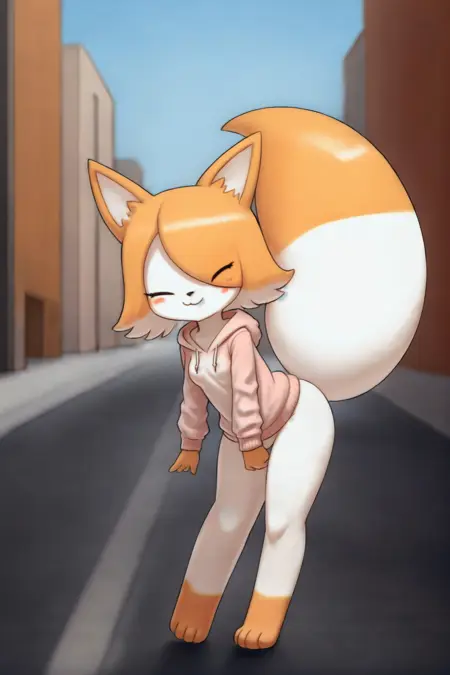 正向强化词:1girl, furry, fox, solo, eyes closed, tail负向强化词(有助于改善手部生成):broken hands, deformed hands, ugly hands, missing fingers, extra fingers